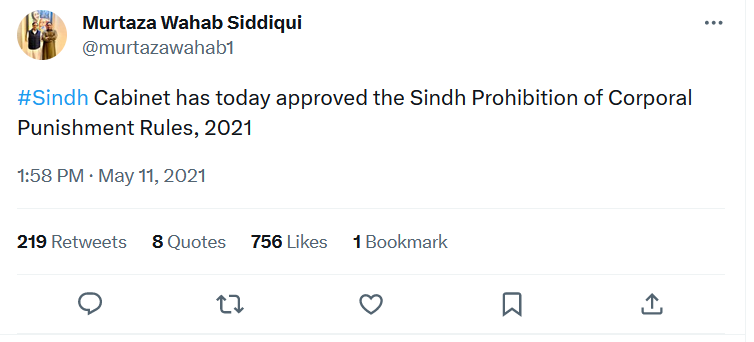 Sindh Assembly approves rules of implementation for Sindh Prohibition of Corporal Punishment Act.